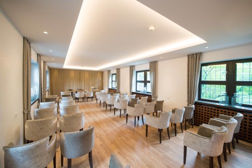 Juni 2018 im geräumigen Kaminzimmer des Schlosses. Modernes Mobiliar und geschmackvolle Dekoration bieten einen stilvollen Rahmen für Ihren schönsten Tag. Über eine malerische Zugbrücke, an der Paare zum Zeichen ewiger Liebe Vorhängeschlösser mit ihren Namen angebracht haben, kommt man in den Innenhof der heutigen Schlossanlage. Gleich links befindet sich im Erdgeschoss das Trauzimmer. Es ist barrierefrei und bietet insgesamt 40 Sitzplätze für die Gäste sowie 4 für Brautpaar und Trauzeugen. Stehplätze sind nicht vorhanden.