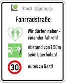 Fahrradstraßen in Gladbeck sollen eine einheitliche Gestaltung erhalten, um eine bessere Erkennbarkeit und eine Anpassung des Verkehrsverhaltens herbeizuführen. Dies beeinflusst auch wesentlich die Verkehrssicherheit.