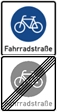 Beginn und Ende eine Fahrradstraße sind mit den Verkehrszeichen nach StVO zu kennzeichnen (Zeichen 244.1 und 244.2). Sollen andere Verkehrsarten zugelassen werden, ist dies durch Zusatzzeichen kenntlich zu machen. Die Fahrbahn ist in diesen Bereichen flächig rot zu markieren, um auf den Wechsel in einen besonderen Verkehrsraum hinzuweisen. Diese Wirkung wird durch eine Markierung des Zeichens 244.1 "Beginn einer Fahrradstraße“ auf der Fahrbahn verstärkt.